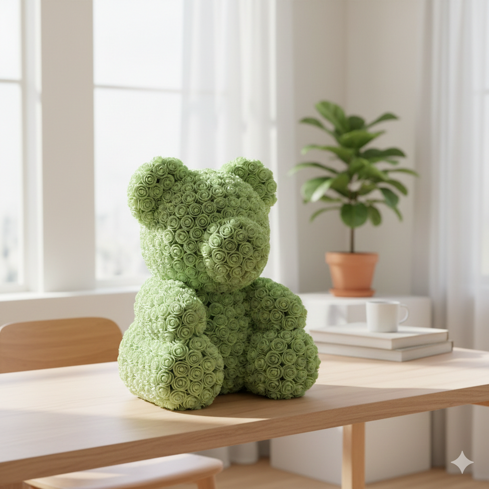 Everlasting Bloom: Unlike real flowers, this "eternal" bear maintains its soft texture and calming colour for years without the need for water or sunlight.